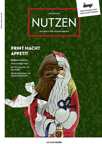 Print macht Appetit: Wie Print dafür sorgt, dass wir Spass am Einkaufen, Kochen und Essen haben, lesen Sie in der Titelstory. Darüber hinaus: Studie belegt: Print häufig umweltfreundlicher als Digital! Erfolgreiche Interessenvertretung EU-Entwaldungsverordnung bewirkt Erleichterungen für Druck- und Papierverarbeitungs-Industrie | Nachlese dmpi Jahrestagung 2025 – das war das Branchentreffen in Baden-Württemberg | mehr passende Bewerbungen zur Fachkräftesicherung 2026 mit Stellenangeboten, die wirken.