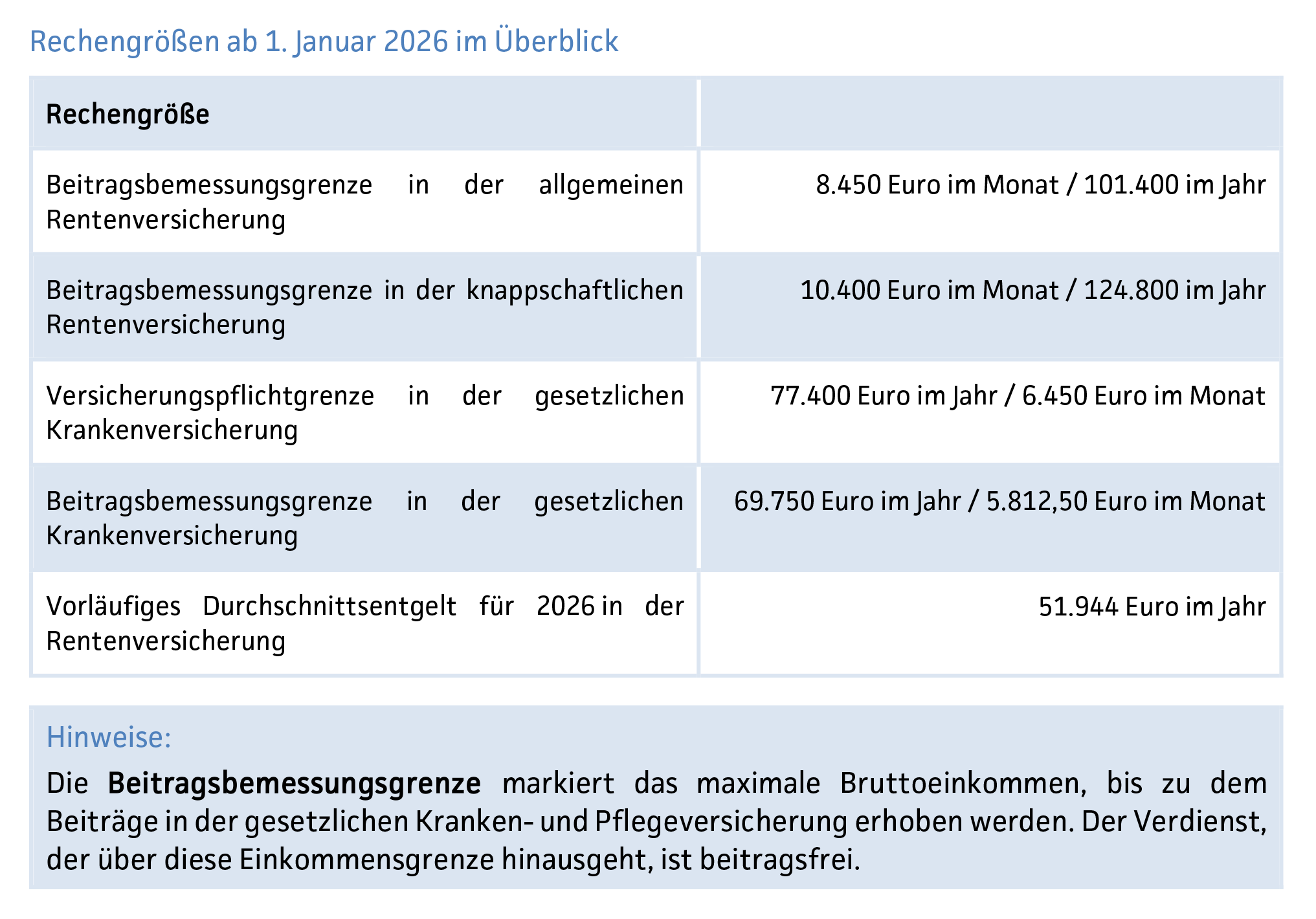 Zum 1. Januar 2026 sollen sich die Beitragsbemessungsgrenzen in der gesetzlichen Kranken- und Rentenversicherung erhöhen.