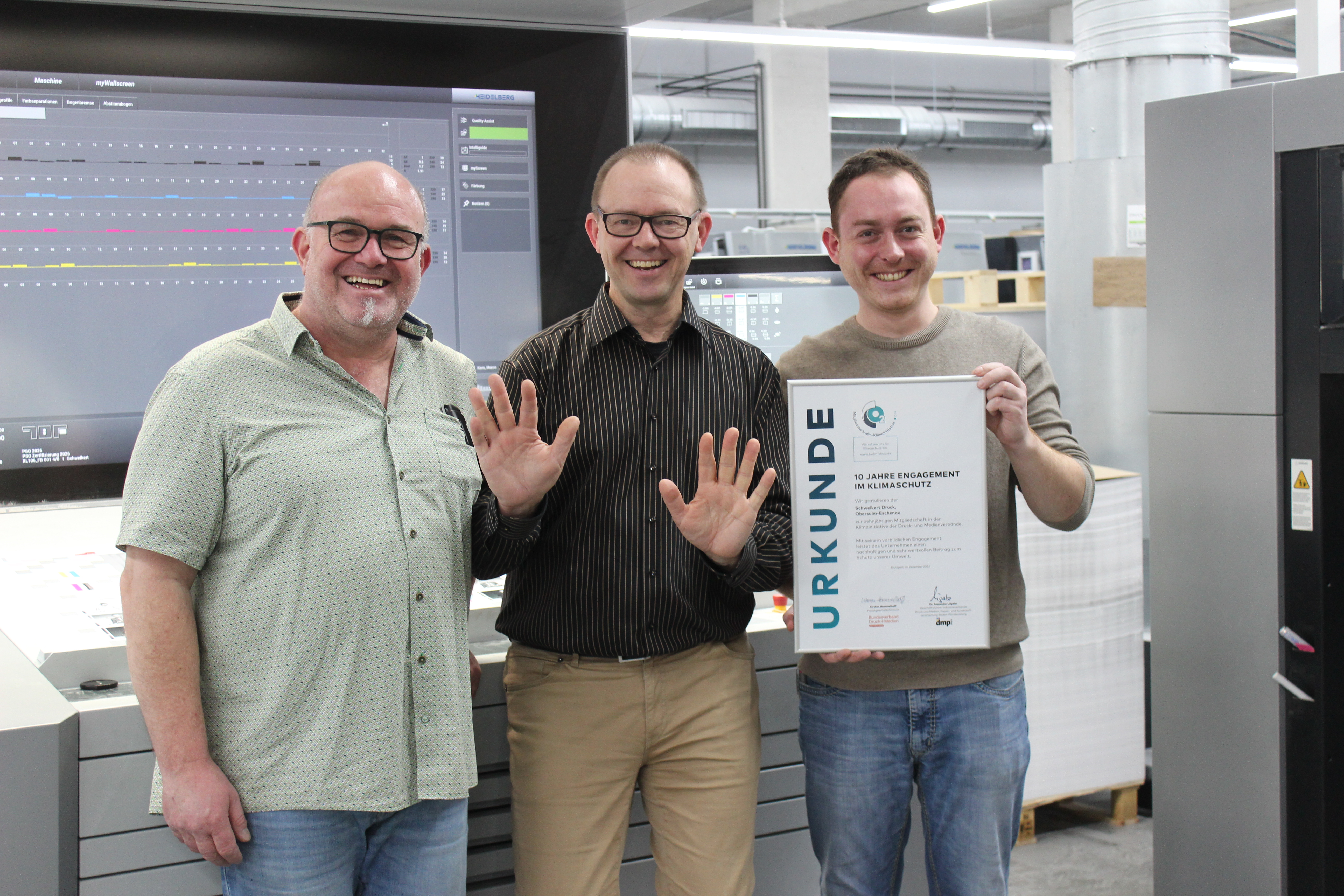 Seit Oktober 2015 ist die Druckerei Schweikert aus Obersulm Mitglied der Klimainitiative der Verbände. Am 22. Januar 2026 wurde das Unternehmen für zehn Jahre kontinuierliches Engagement im Klimaschutz offiziell ausgezeichnet.