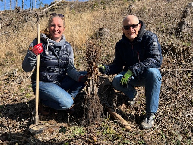 Am 23. März 2026 wurden die Bäume gepflanzt, die im vergangenen Jahr von den Teilnehmerunternehmen der Klimainitiative gespendet wurden. Stellvertretend für die Unternehmen haben Julia Rohmann, Projektmanagerin der Klimainitiative im BVDM, und Stefan Brunken, Berater der Klimainitiative der Druck- und Medienverbände über 3.500 Bäume gepflanzt.